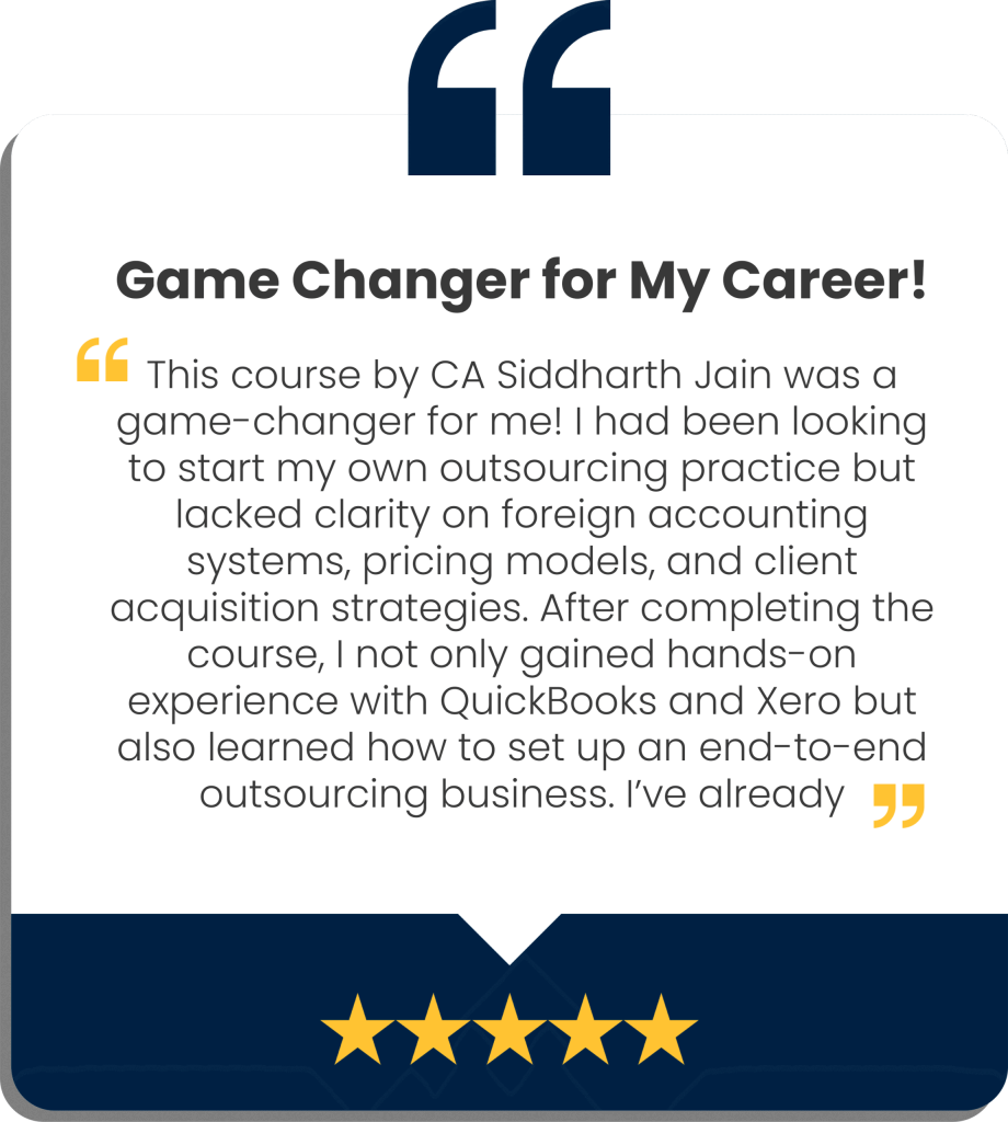This course is not just about software training itβs a complete roadmap to kickstart and grow your Foreign Accounting Outsourcing Practice.